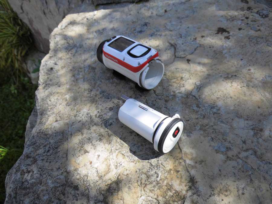Otro rasgo característico de la Bandit es que la parte externa, solo es la carcasa, pantalla y el objetivo, el interior se desmonta cómo un cartucho e incluye la batería y la tarjeta de memoria MicroSd (que hemos comprobado que puede llegar a ser de 128 Gb sin problema, con la condición de que sea de alta velocidad). Este sencillo sistema de montaje, nos permite cambiar la batería en cuestión de segundos en cualquier parte y además este «cartucho», como tiene un conector USB lo conectamos al PC, MAC, TV,.. para ver y descargar los fotos i vídeos sin necesidad de cables ni adaptadores.